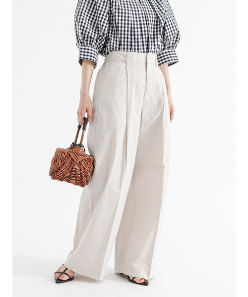 大人のゆとりを感じさせるワイドシルエットのバキーバンツ。 タックを入れることでお腹周りはすっきりとした印象に見せてくれます。 リネン混素材のナチュラルな風合いとレーヨンの柔らかな質感で着心地も快適に。 シンプルなデザインに仕上げ、オンオフ問わず幅広く活躍してくれるアイテムです。 ※商品画像は、撮影環境やお客様のご利用のPC・スマートフォンのモニター環境などにより実物と色味に差異がある場合がございます。 【その他採寸】 F ウエスト:[後ゴム仕様]62cm