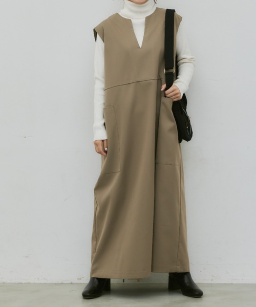 キーネック(細く深めに入ったVネック)デザインと、ゆとりのあるIラインシルエットで、全体がすっきりとした印象になる美シルエット。 フロントの切り替えとサイドに大きめにデザインしたポケットがアクセントになり、合わせるインナー次第で変化を加えられるデザインに仕上げました。 ■styling ・カットソーを合わせてカジュアルな印象に 深く入ったキーネックからはボーダーやカラーなどアクセントになるカットソーをのぞかせるコーディネートもおすすめ。 ・タンクトップ合わせですっきりと 肩を覆う袖ぐりは、1枚で着ても安心なデザイン。 ワンピースのシルエットもすらりとしたIラインなので、スッキリ見えが叶います。 《point》 ・Iラインのシルエット+キーネックデザインで顔周りもすっきりとした印象に ・表面感のきれいなツイル素材を使用、様々なシーンにマッチします ・合わせるインナー次第で変化を加えられるデザインで季節を問わない 《detail》 ・トレンドのIラインシルエットワンピースを、Libra Cueらしいリラックス感のあるシルエットにアップデート ・ウエストの切り替えと高めのポケットでスタイルアップ効果も ・スニーカーでもサンダルでも合わせられるロング丈 《fabric》 ・程よいコシと膨らみのある、表面感のきれいな素材 ・きれいな生地感なので、シーンを問わず様々なコーディネートが楽しめます …………………… 透け感 : 無し 厚さ:普通 伸縮性:なし 裏地:なし ポケット:あり お手入れ方法 手洗い 〇 お取り扱い上のご注意: ご自宅でお手入れができます。 色移りを防ぐため、単独洗いをおすすめします。 …………………… ※ご注意※ ・屋外の光や照明の当たり具合で、実際の商品の色味とカラー別画像の色味に若干の違いが発生する場合がございます。 ・詳細画像と併せてご確認の上、ご注文いただきますようお願い致します。 【 Libra Cue 】 “包み込むような気持ちよさを” 快適で豊かな生活を送りたい そんな暮らしの”きっかけ”となるデイリーウェアをご提案します 【 商品のお気に入り登録 】 完売カラーの再入荷通知やラスト1点の通知プライスダウンの通知も受け取ることができます。 【 ブランドのお気に入り登録 】 新商品や再入荷など、ブランドの情報をいち早くお知らせします。 ※ご注文いただいた予約商品のお届け時期確認は、注文履歴ページより行えます。
