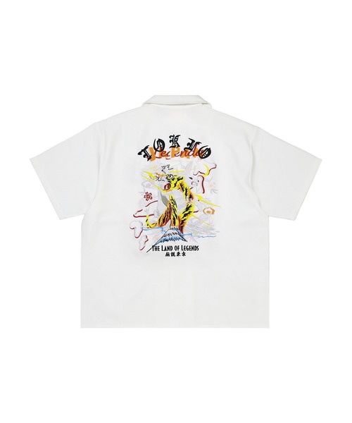 LEGENDA Souvenirシリーズ最新作。スカジャンからインスパイアを得たグラフィックがバックに大きめに刺繍で表現されたシャツ。フロントは両胸に刺繍しアクセントをプラス。日本文化と現代ファッションが融合した一枚です。落ち感のあるしっかりとした生地で着心地の良い仕上がりになっています。ユニセックスで着用いただけます。【LEGENDA / レジェンダ】“TOKYO STREET MODE”をコンセプトに、世界のストリートカルチャーの感性を取り入れた東京発信の新しいミクスチャースタイルを提案するユニセックスブランド。シーズン毎にメッセージを込めた異なった世界観を表現。様々なブランドやアーティスト等とのジョイントワークも展開。▼ 商品のお気に入り登録がおすすめ !!商品ページ内のハートマークをクリックすると、商品完売時の再入荷、在庫1点時の通知、コーディネート画像がアップされた時などや、お得なお値下げの際の通知を受ける事ができます。【お知らせ】ページでも通知が確認できます。