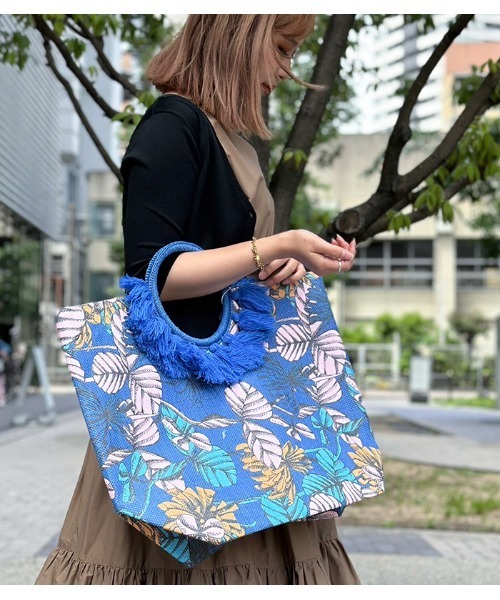 【SHIRALEAH】 アメリカ、シカゴをベースにトレンドかつ価格が手頃なアクセサリーを提供するブランド。 コレクションは、ヨーロッパの厳しい環境規制の基準に基づき、環境に配慮し PVCを使用しない、負担が少ないポリウレタンなどの素材を使用やヴィーガンレザーをはじめダメージのない染料を使用するなど 人・動物に優しく環境を害する排出物削減など取り組みを続けるエコブランド。 *+*+*+*+*+*+*+*+*+*+*+*+*+*+*+ 鮮やかなボタニカル柄が夏気分を盛り上げる軽くて持ちやすいペーパートートバッグ。 鮮やかなボタニカル柄とサークルトップハンドルにフリンジをあしらい旬なディティールを普段使いしやすいトートバッグに落とし込んだデザインは ベトナムの手工芸品からインスパイアを受け、鮮やかなカラーリングとアジアンテイストを感じるエスニックな雰囲気漂うデザインが魅力。 エコブランドらしく、ペーパーストロー(紙)素材を使用し、とても軽いだけではなく、 毛羽立ちを抑えるため、繊維を縦横方向に織り耐久性も考慮し、 内側は補強・傷防止のポリエステルライナーがつき、小物の仕分けに便利なポケットも配され機能面も充実。 ハンドル部分も紐編みで仕上げているので、チクチク感もなく手に馴染むのも嬉しいポイント。 長財布、ポーチ、ペットボトルや日傘など夏のお出掛けの必需品もしっかり収納できるサイジングで 大きく開閉可能な間口は荷物を詰め込んでも出し入れもしやすくストレスフリーに持っていただけます。 夏らしい華やかなデザインなのでシンプルなコーデにも一点投入するだけで、カジュアルスタイルはもちろんきれいめコーデにも映え トレンド感とワンランク上のおしゃれなスタイルに仕上げてくれます。 *+*+*+*+*+*+*+*+*+*+*+*+*+*+*+ ★商品のお気に入り登録をおススメ致します★ サイズやカラー横のハートマークをクリック! 完売カラーの再入荷や、ラスト1点の通知、 セールの際の通知を受ける事ができます。