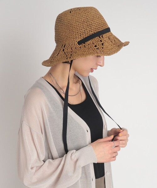 【デザイン】 リボンデザインがアクセントの透かし編みペーパーハットです。 今っぽくリボンを垂らして被っていただいたり、リボン結びで被っていただいてもガーリーっぽく違った印象に。 リボンは取り外しても使える2WAY仕様です。 ツバは形状変化OK、内側サイズ調整可能です。 店舗へのお問い合わせ商品番号:C70-26312 ●製品寸法: 00:内周56~59cm 高さ12cm つば7cm 付属リボン全長131cm 付属リボン幅1.5cm 備考: