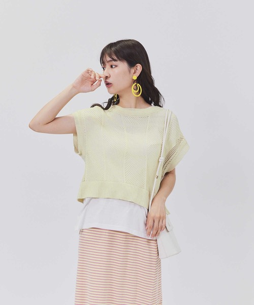 パッチワーク風の透かし編みのニットベストとフレンチスリーブTシャツのセットアイテム。 トレンド性の高いパックワーク風の透かし編みで、後ろのスリットがポイント。 ニットベストは長めのワンピースに上からレイヤードさせるのもオススメです。 ■着用コメント(女性) 167㎝/Lサイズ 透かし編みが女性らしいフレンチスリーブTシャツとのセットアイテム🎶後ろのスリットがポイントとなってとっても可愛い♡中のインナーを変えたり、ベストをワンピースなどと合わせたりと着回し豊富なアイテムです❤️🔥 ■着用コメント(女性) 158㎝/Mサイズ 透かし編みのベストは、白のTシャツとセット販売なんですが、今回はTシャツは使わずタンクトップで合わせてみました😆✌️重たくなりがちな黒も、透かし編みだと、軽やか涼しげです❕ ■着用コメント(女性) 156㎝/Mサイズ ベストの丈感は短く、インターもどんなインナーを使っていただいてもお似合いかなと思いました!!😚後ろのリボンが女の子らしくて可愛いアイテムですっ☝️♡ 《 BACK NUMBER/バックナンバー 》ワーク・ミリタリーといったアメリカンカジュアルを根幹に、古き良きヴィンテージウェアの魅力を受け継ぎながらも、現代のライフスタイルや着こなしに合わせた素材・シルエットで再構築した、「Re-Vintage」をコンセプトに掲げるブランド。「和紙デニム」をはじめとした、既成概念に囚われない独自の表現・解釈で様々なプロダクトをリリースしている ーーーーーーーーーーーーーーーーーーーーーーーーーーーー お得に&便利にお買い物を楽しむポイント♪ ▶商品のお気に入り登録( ♥ハートマーク をクリック) お気に入りアイテムの完売カラーの再入荷通知や、 ラスト1点の通知、セールなどの情報をいち早くお届け。 ▶ショップ・ブランドのお気に入り登録 新商品や再入荷、クーポン配布などお得な情報を随時お届け。 ーーーーーーーーーーーーーーーーーーーーーーーーーーーー