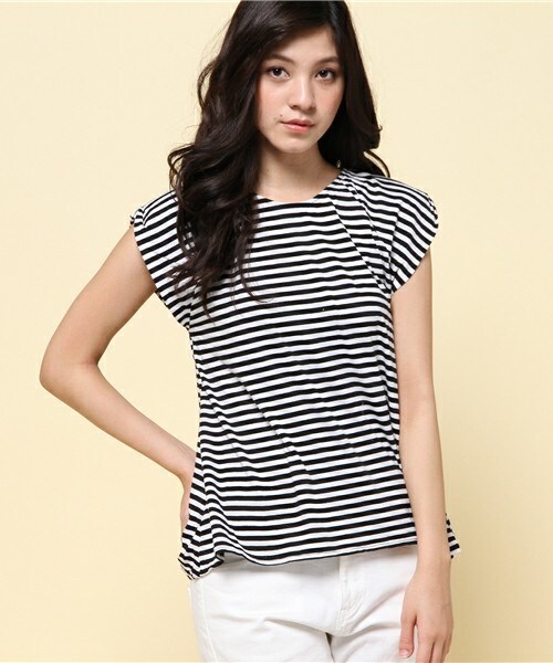 オーガニック天竺を使ったボーダーTシャツ。裾にかけてフレアするシルエットです。前後で着丈に差をつけ、スカートやハイウエストのアイテムとも相性のいいバランスに設定しました。袖は折り返しデザインのキャップスリーブです。