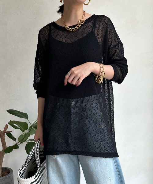 ■2023 SPRING & SUMMER ITEM■女性っぽさを引き立てる程よいシアー感ネップ糸を使用し、表面感のある素材で仕上げたプルオーバー。サイズ感は、ゆるっとややルーズで抜け感たっぷり。程よい透け感が大人らしく上品に決まるので、カジュアルになり過ぎないのがポイントです。キャミソールやタンクトップをインナーに1枚で着るのはもちろん、キャミワンピなどとレイヤードしても着られるので様々なアイテムと着回していただけますよ。- POINT -・表面感のある素材・ややルーズなサイジング・着こなしに困らず幅広く着られる!--------------------------------洗濯:手洗い可能透け感: あり裏地: なし伸縮性: ややあり光沢感: なし--------------------------------【 ♡ をクリックでお得な情報をお知らせいたします 】〈 商品のお気に入り登録 〉 お気に入りアイテムのお値下げ・再入荷・在庫ラスト1点など通知を受けることができます。〈 ブランドのお気に入り登録 〉DOUDOUの新商品や再入荷、セール、クーポン配布などお得な情報を受けることができます。--------------------------------------※ 生産の都合上、お届け時期が前後する場合がございます。※ 掲載画像の商品の色味は、 撮影場所や光の当たり具合などにより色味が異なって見える場合がございます。 また、お客様のお使いのPC・スマートフォン等のモニター環境などにより色味が異なって見える場合がございます。予めご了承の上ご注文ください。 ※ 着用、お取り扱いの際は、商品についている品質表示とアテンションタグを必ずご確認下さい。