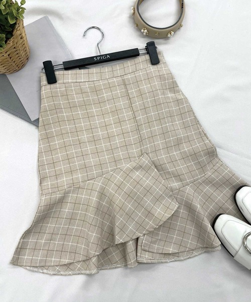 アシンメトリーな裾のフリルが可愛いスカート。上品な細めのチェック柄も魅力です!※モニター・撮影環境等により実際の商品と多少色味が異なって表示される場合がございます。 予めご了承をお願いいたします。 【お買いものをお楽しみいただく為に☆】☆商品のお気に入り登録完売カラーの再入荷通知や、ラスト1点の通知、セールの通知も受け取ることができます。☆ブランドのお気に入り登録新商品や再入荷など、いち早くブランドのお得な情報を受け取ることができます!