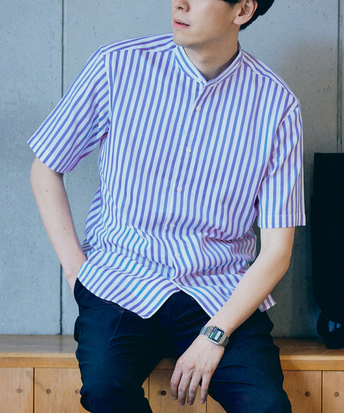 オンオフ兼用の万能バンドカラーシャツ■素材強撚の糸を使用することで、春夏に最適なドライな着心地を体感できます。また、吸水速乾性や通気性が非常に高い為、夏に着用するのに最適な生地です。■デザイン、シルエットやや細めのシルエットのバンドカラーシャツ。フロントを開けて羽織りアイテムとしてカジュアル使い~ジャケットのインナー・ビジネスカジュアルでの1枚使用まで幅広く活躍するアイテム。清涼感のある生地感もポイントです。※同シリーズで下記品番のご用意もございます。23051312200010 シアサッカー ワンピースバンドカラー ショートスリーブシャツ**********************・透け感:なし・裏地:なし・伸縮性:なし・光沢感:なし・生地の厚さ: ふつう**********************【ご注意】※照明の関係により、実際よりも色味が違って見える場合があります。またパソコン・スマートフォンなどの環境により、若干製品と画像のカラーが異なる場合もございます。※商品の色味は、商品アップ画像をご参照ください。モデルサイズ:身長:179cm 着用サイズ:L本体:洗濯機洗い(弱)