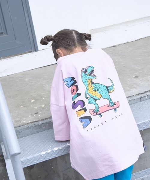 ■デザイン■ 恐竜のグラフィックを使用したTシャツ。 少しデザインを替え、POPでCUTEな1枚に仕上げました。 サイズは110cm・130cm・150cmの3サイズ展開。 少し大きめサイズをダボっと着るスケーターファッション・ストリート感を楽しんで頂きたいです! おすすめはピンクのダイナソー。 男のこにも女のこにもおすすめです!