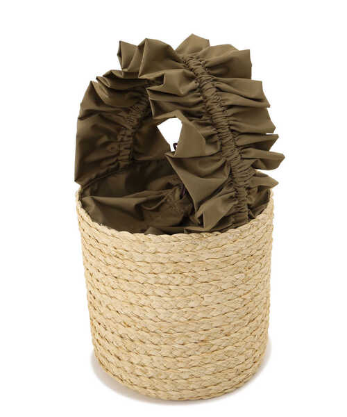 春夏スタイルにオススメ!ラフィアバケットバッグ。筒状ボディにつけたフリルハンドルが可愛らしいデザイン。口元は巾着タイプなので、貴重品などをしっかり目隠しできます。今年トレンドのデニムカジュアルにも、フェミニンな着こなしにもお使いいただけます。