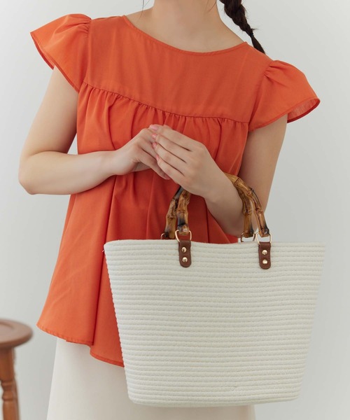 バンブーハンドルがアクセントをプラスするコットンロープバッグコットンロープ素材に、バンブーハンドルがアクセントになったバッグ。マチのあるデザインで、見た目以上にしっかり入る収納力の高さも嬉しいポイントです。きれいめにもカジュアルなスタイルにも合わせやすく、様々なシーンで活躍するアイテムです。▼ATTENTION▼※摩擦や汗、雨等で濡れた場合、他の衣料に色移りする場合がございますのでご注意下さい。※撮影時のライティング、PCやスマートフォンの環境により写真の色味が実際の商品と異なって見える場合がございます。ご了承の上お買い求め下さいませ。※モデル着用画像は実際の色と多少異なる場合がございますのでマネキン画像をご確認ください。※製造過程や素材により染料等の臭いが強い場合がございます。臭いが気になる場合は一度陰干しされてからご使用下さい。※着用衣装はすべて参考商品です。――――――――――《お買い物をもっと楽しむために!》■商品のお気に入り登録お気に入りの商品やカラーを登録していただくと値下げ・在庫1点・完売後の再入荷などの通知を随時受け取ることができます。■ブランドのお気に入り登録新商品の発売や再入荷、セール、クーポン配布などEditSheenのお得な情報を受け取ることができます。