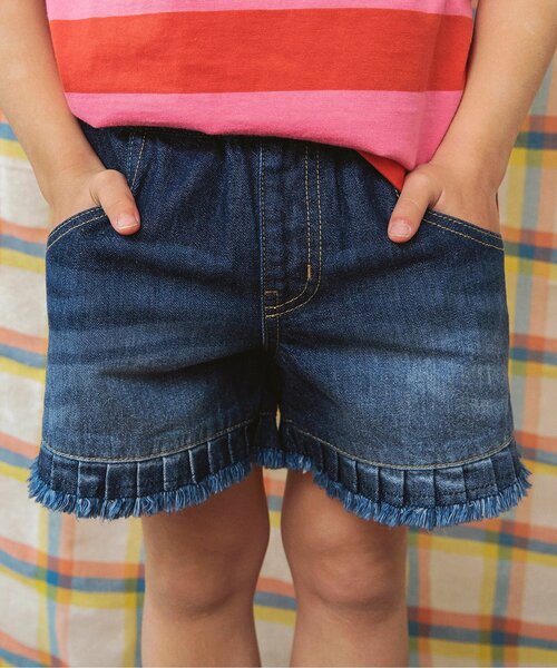 BREEZE(ブリーズ)のパンツ「裾プリーツデニムショートパンツ」は、手頃な価格とシルエットのきれいさが人気! 【 BREEZE -ブリーズ- 】 WEAR A HAPPY SMILE こだわりと遊び心のつまった、着ると「笑顔」のWEAR、「着たい」がいっぱいのSHOP そんなHAPPY SMILEに出会える場所がBREEZE
