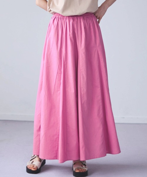 INDIAN COTTON シリーズ 通気性に優れ、さらっとした肌触りにふんわりとした風合いが特徴のインド綿シリーズが今年も登場! 裾に向かってふんわりと広がるフォルムが魅力的なロングスカート。ギャザーを寄せ、動きのあるシルエットを作り出します。トップスをタックインしたメリハリ感のあるコーディネートがおすすめ◎雰囲気の異なるバリエーション展開にも注目したいアイテムです。透け感[無し]※オフホワイトやや有り 裏地[すべて有り] 伸縮性[無し] 光沢感[無し] 生地の厚さ[普通] 付属品[無し] ポケット[無し] インド綿シリーズ一覧はこちら●製品寸法:F:ウエスト66 ヒップ- 総丈88 裾幅143備考: