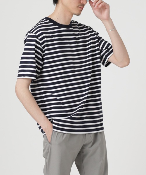NANO universe(ナノ・ユニバース)LB.04『コーデ映えするマリンボーダーTシャツ』春夏に活躍するボーダーTシャツ。一見して定番的なボーダーTシャツですが、編立時に一本の糸を複数の色に染色したスペースダイ糸を使用しています。ボーダーの濃色糸にアクセントとして一部通したことにより、色目の様々な細いラインの入る、拘りのあるボーダー。きれいめなスラックスやカジュアルなジーンズ、チノパンツ、ショーツなどにも合わせやすく休日のスタイルにも最適です。ーDETAILー・拘りのあるボーダー生地を使用したTシャツ・スタイリングのポイントにお勧めのカットソーーFABRICー・編立時に一本の糸を複数の色に染色したスペースダイ糸を使用・洗濯機使用可■取扱方法蛍光増白剤が入っていない洗剤を使用して下さい。色物(特に濃色)と白物・淡色物は分けて洗ってください。ネットを使用してください。あて布を使用してください。▼商品のお気に入り登録お気に入りアイテムの再入荷や残り1点の通知を受け取ることができます。▼ブランドのお気に入り登録新作アイテムの入荷や人気アイテムの再入荷、タイムセールやクーポンなど、いち早くブランドのお得な情報を受け取ることができます。※サンプルにて撮影、採寸を行う為、実際にお届けする商品と仕様やサイズが異なる場合がございます。