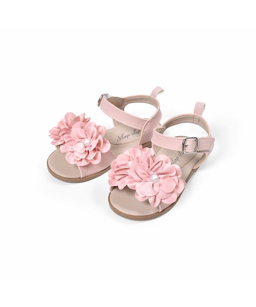 立体的なお花のモチーフがインパクトのあるサンダル。 ボリュームのあるふわふわのお花の真ん中にはパール調のビーズをオン。 細いバックルデザインの留め具でおねえさんがはいているみたいなデザインになっています。 マジックテープで着脱が簡単なのがうれしいポイント◎ ワンピースやスカートと合わせたガーリーなコーディネートがオススメ。 キュートなサンダルで足元もおめかしして春夏のおでかけを楽しんじゃお! 女の子らしいピンクのお花のピンクとホワイトのお花が映えるシルバー調のグレーの2色展開です。 2023年春夏女の子アイテム 【 2023年 4月のテーマ / My fave Pattern festa 】 いきもの柄、花柄、サファリ柄、フルーツ柄・・・ 推し柄で夏の陽気を楽しもう◎ カラーもワントーンアップしてパッと目をひくコーデでゴールデンウィークや春夏のおでかけをエンジョイ! 【 2023 SPRING / SUMMER Fresh Up! 】 ベーシックがいいけど新しいものが欲しい! 何かちょっと違うかわいく、ときめく部分が欲しい! 2023年の春夏はときめきを具現化させたベーシックだけどおニューなアプデ商品を展開します。 【SLAP SLIP(スラップ スリップ)】 ~子どもの欲しいをカタチに~ ヨーロッパのこどものように 子どもらしい今しか着れないナチュラルなかわいさを提案 どこか上品で清楚感漂うフレンチカジュアルは いつものコーディネートをさりげなく格上げ