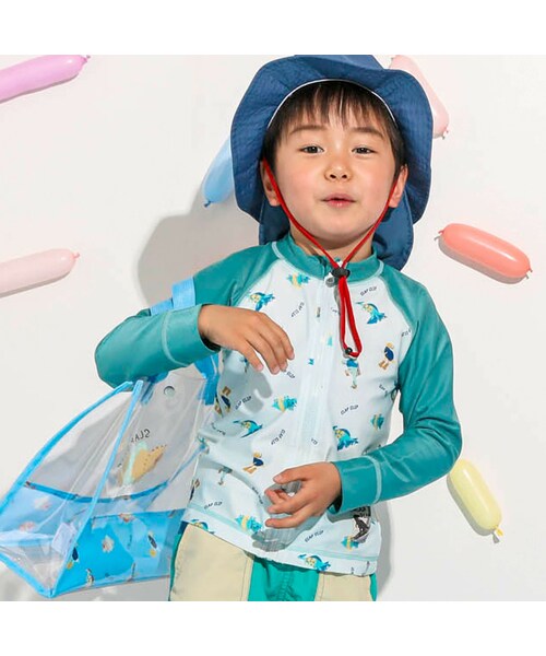 シンプルなデザインのラッシュガード。 恐竜の総柄がカッコいいグリーン系と袖の切り替えがオシャレなホワイト系(切替)、カラーごとにデザインが異なるのでお気に入りのアイテムを見つけてね。 フロントはファスナー仕様になっているので簡単に着ることができるアイテムになっています。 袖には親指を通せるスリットをほどこして、手の甲までしっかりガードできるのがうれしいポイント◎ ラッシュガードは海やプール等の春夏の水辺のアクティビティに必須なアイテム。 今年の春夏はオシャレに紫外線や体の冷えからガードしてレジャーを楽しんじゃお! スイムバッグ(1814-53057)をご用意しているので、お気に入りでそろえて春夏のアクティビティを満喫◎ 2023年春夏男の子アイテム 【 2023年 4月のテーマ / My fave Pattern festa 】 いきもの柄、花柄、サファリ柄、フルーツ柄・・・ 推し柄で夏の陽気を楽しもう◎ カラーもワントーンアップしてパッと目をひくコーデでゴールデンウィークや春夏のおでかけをエンジョイ! 【 2023 SPRING / SUMMER Fresh Up! 】 ベーシックがいいけど新しいものが欲しい! 何かちょっと違うかわいく、ときめく部分が欲しい! 2023年の春夏はときめきを具現化させたベーシックだけどおニューなアプデ商品を展開します。 【SLAP SLIP(スラップ スリップ)】 ~子どもの欲しいをカタチに~ ヨーロッパのこどものように 子どもらしい今しか着れないナチュラルなかわいさを提案 どこか上品で清楚感漂うフレンチカジュアルは いつものコーディネートをさりげなく格上げ