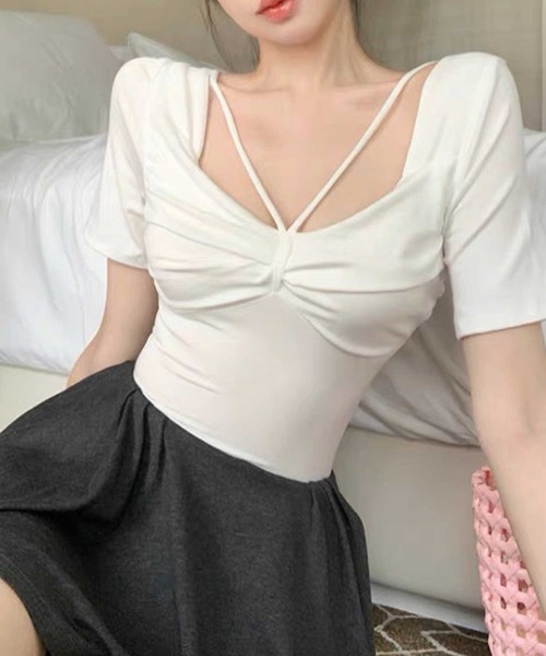 細紐でデコルテラインをきれいに見せてくれる半袖トップス。リボンのようなデザインが魅力です! 伸縮性もあり、着心地も抜群です。 ※モニター・撮影環境等により実際の商品と多少色味が異なって表示される場合がございます。 予めご了承をお願いいたします。 【お買いものをお楽しみいただく為に☆】 ☆商品のお気に入り登録完売カラーの再入荷通知や、ラスト1点の通知、セールの通知も受け取ることができます。 ☆ブランドのお気に入り登録新商品や再入荷など、いち早くブランドのお得な情報を受け取ることができます!