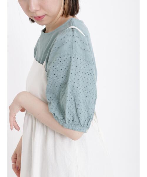 サイドや袖を刺しゅうレースで切り替えたカットソー。 カーブを付けた前裾のスリットも、スタイリングにこなれ感をプラスしてくれます。ボリュームのあるスリーブも可愛らしいポイント。 コーディネートに取り入れるだけで、甘さのあるスタイリングに決まるアイテムです。 ※商品画像は、撮影環境やお客様のご利用のPC・スマートフォンのモニター環境などにより実物と色味に差異がある場合がございます。 【その他採寸】 F 着丈:[前]58.5cm[後]64cm