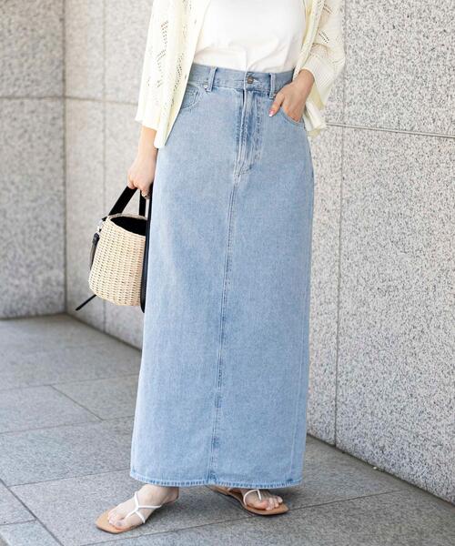 ベーシックなデニムのIラインスカートは流行に左右されない優秀アイテム ■デザイン ストンとまっすぐ落ちるIラインのシンプルなデニムロングスカート。 すっきりした腰回りから裾にかけてキレイなラインを描き、カジュアルの中に女性らしさをプラス。 バッグスリットを深めにインし、脚さばきも良好です。 ■素材 通年使い易い10.5オンスのデニム生地を使用しているので、シーズン問わずに取り入れていただます。 ■スタイリング ロンTやコンパクトなリブトップスなどで様々なイメージでお召しいただけます。 腰周りをスッキリとさせた広がりすぎないシルエットなので、ボリューム感のあるトップスともバランス良く合わせられる優秀ボトムです。 足元次第でレディライクにも見せられるスカートです。 透け感:なし 生地の厚さ:普通 光沢感:なし 裏地:なし ウエストゴム:なし サイドポケット:あり 家庭洗濯:手洗い可能 【注意点】 ※インディゴ染料使用製品のため、他の物と分けて洗うことをおすすめします。つけ置き洗い・濡れたままの放置は禁止となります。また、摩擦により他の物へ色移りすることがありますので雨や汗で湿った状態では特にご注意ください。 ※撮影商品はサンプルの為、実際の仕様と異なる場合がございます。 ※画像の商品は光の照射や角度、お使いのモニター環境により、実物と色味が異なる場合がございます。スタジオ物撮りの画像が実物の色味に一番近くなっております。 ※予約商品の場合、お届け予定はあくまでも目安となります。 生産の都合上、お届け時期が前後したり実店舗入荷時期とずれる場合がございますので、あらかじめご了承ください。 品名:IラインDENIM SK 品番:7670-633-0158