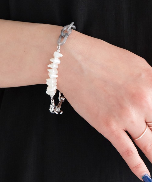 - 韓国で買い付けたバイヤーセレクトアイテム -バロックパールと2種類のチェーンを組み合わせたブレスレット。涼し気なクリアチェーン×ゴールドチェーンと、シックなマーブルチェーン×シルバーチェーンの2パターンをご用意。アシンメトリーなシルエットとエッジの効いたデザインでスタイリングのアクセントにおすすめです。・アクリルパール・金属アレルギー対応・肌に優しいニッケルフリー・プレゼント/ギフト用にもおすすめ◎・ゴールド/シルバーの2色展開【ニッケルフリー】金属アレルギーの方にもお楽しみいただけるよう、アレルギーの原因とされるニッケルをほぼ含まずメッキ処理を施したアクセサリーです。※必ずしもアレルギー反応が出ないということではございませんので、お肌の敏感な方は慎重にご購入下さいませ。【お買いものをよりお楽しみいただく為に♪】▼商品のお気に入り登録(ハートマークをクリック)お気に入りアイテムの完売カラーの再入荷通知や、ラスト1点の通知、セールの通知も受け取ることができます。▼ブランドのお気に入り登録新商品や再入荷など、クーポン配布などのお得な情報を受け取ることができます。■商品注意事項■※商品画像は、光の当たり具合やパソコンなどの閲覧環境により、実際の色味と異なって見える場合がございます。予めご了承ください。※末永く愛用頂く為に、アテンションタグ・洗濯ネームを必ずご確認の上、着用又はお取り扱い下さい。※生産時期により色味が多少異なる場合がございます。予めご了承ください。