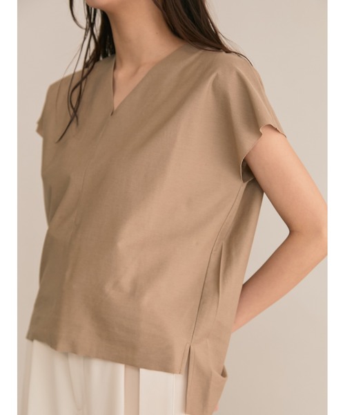 綿とリヨセルを使用したツイル目のカット素材で、布帛見えするキレイめカットソー。Vネックと裁ち切りデザインの袖と裾が抜け感を感じさせる1枚。薄手のカットソーで涼しさ・肌触りの良さもありつつ、しっかりと撚糸された素材で、クールな見え感と、絶妙なハリ感、ドレープ感がきれいなカットソーに。きちんと系ボトムと合わせて真夏のオフィススタイル、フレアースカートやワイドパンツと合わせたオフスタイルと幅広く着回せる、大人のカットソーです。----------------------------透け感:05グレーのみ少しあり裏地:なし伸縮性:あり光沢感:なし生地の厚さ:薄地ポケット:なし開き方:なし洗濯方法:手洗い可----------------------------
