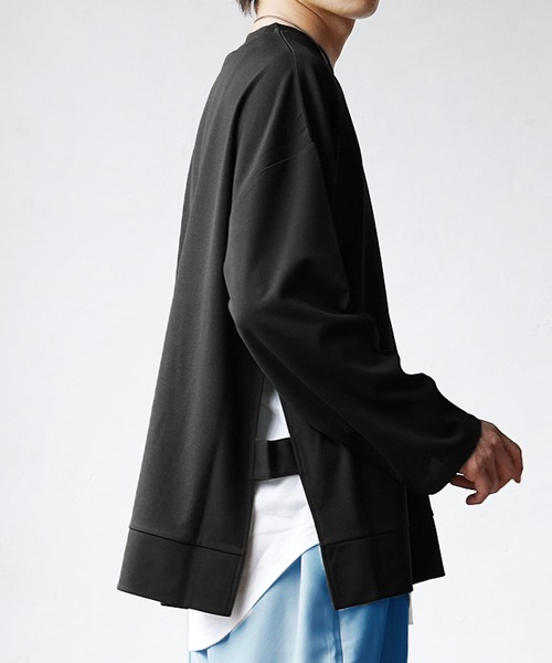 【MinoriTY】サイドオープンクルーネックアンサンブル ロンT レイヤードロンTシャツ メンズ 無地