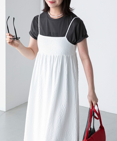 《トレンド感抜群のぽこぽこジャガード/ヴィンテージライクなギンガムチェック 》バックスタイルまで抜かりなし!色違いで揃えたい”バックリボンキャミワンピース”・表面感のある素材でトレンドライクに決まるキャミソールワンピース・裾に向かってふんわり広がるシルエットが女性らしい印象に・後ろ姿まで抜かりないバックリボンデザイン・高めの切り替え位置でスタイルアップ効果も◎・細めの肩紐で華奢見えが叶う◎・長さ調整可能なアジャスター付き肩紐・サイドファスナー仕様で着脱も楽々・選べるアソート展開-----------透け感…なし伸縮性…あり光沢感…なし生地の厚さ…普通裏地…あり洗濯方法…手洗い可能----------■取り扱い方法クリーニングネットをご使用ください。アイロンはあて布をご使用ください。おしゃれ着洗い用中性洗剤をご使用の上、水温30度以下でもみ洗いは避け押し洗いしてください。洗濯の際は色落ちしますので単独で洗い、水に浸けたままで放置しないでください。商品の特性上、柄の出方が1点1点が異なったり、柄の多少のずれ、サイズの多少の違いがある場合がございますが、これはこの商品の持ち味としてお考え下さい。※取り扱いについては、商品についている品質表示でご確認ください。■着用レビュー162cm/FREEサイズ着用すねの中間下あたりまでの程よい丈感です。裏地付きなので透ける心配もなく、トップスの上からさらっと着用できます。程よい厚みの素材感なのでオールシーズン活躍しそうです!ブラックとアイボリーは、ぽこぽことした表面感がはっきり出るややハリのある素材感、ブラック系とグリーン系は、表面感がありつつもよりナチュラルな風合いの素材感です。≪お買い物をお楽しみいただくために≫▼商品のお気に入り登録完売カラーの再入荷通知や、ラスト1点の通知、セールの通知も受け取ることができます。▼ブランドのお気に入り登録新商品や再入荷等、いち早くブランドのお得な情報を受け取ることができます。