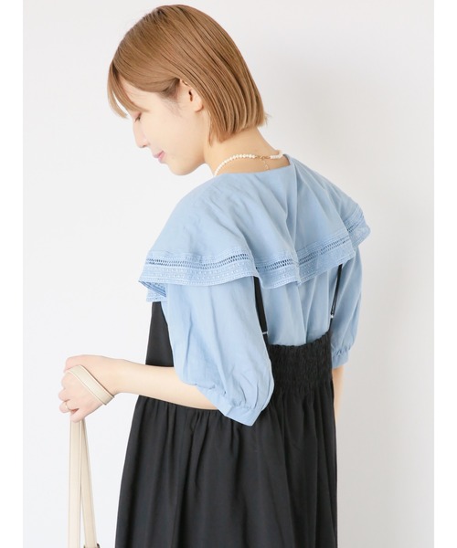 レースで縁取られたラッフル襟が華やかな印象を与えてくれるブラウス。丸みのあるスリーブも愛らしさを演出してくれます。綿100%素材のさらりとした着心地も魅力ポイント。カジュアルな着こなしから綺麗めコーデにと、幅広く活躍してくれるアイテムです。※商品画像は、撮影環境やお客様のご利用のPC・スマートフォンのモニター環境などにより実物と色味に差異がある場合がございます。