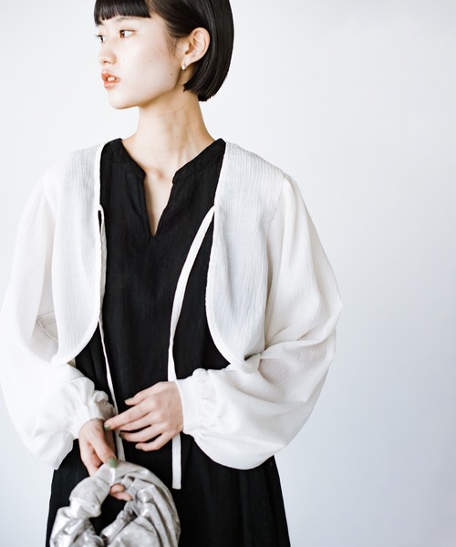 アームボレロの難しいポイントを全部解消!おしゃれだねって言わせてみせる! 最近気になるアームボレロ。手持ちのトップスにさっと足すだけで、新鮮さがグッと増してコーデの物足りなさもばっちり解消!一気におしゃれに見せてくれます。でも、着方や合わせに悩んだり、どれが正解?と迷子になったり。そんな心配まるっと解決してコーデを考えるのが楽しくなるようなアームボレロ作っちゃいました! ○サイズ感 普段フリーサイズをお選びの方は、MサイズかLサイズがおすすめです。 ○バランス悪く見えそう…の不安解消!緻密な設計 着心地に安心感が出るように丈は短すぎず、サイドを胸下ではなくウエストの高めの位置まで伸ばして調整。ハイウエストのボトムスにちょっとかかるくらいなので、バランスが取りやすいんです。すそ幅もしっかりとって、からだにピタッとくっつかないシルエットに仕上げました。ゆるめのTシャツとも楽に重ねられます◎。 ○飽きそう…の不安解消!前後2WAY 視線を上に向けてくれるリボン開きの逆側は、より上品な甘さを添えてくれる、ひらりと重なったデザイン。ロゴTなどインナーを見せたいときはリボン側、キャミワンピなど見えなくてもいいときは重なった側と、着まわしの幅も広がります。 ○何に合わせたら…の不安解消!ぽんわり袖 インナーが長袖でも半袖でも重ねて着やすいように、袖はぽんわりとボリュームをつけました。モゴモゴしにくく気軽に着られます。さっと腕まくりもしやすいように、袖口には半分だけゴムが入っています。 ○いつ着るの?の不安解消サラサラ素材 季節の変わり目から長く着やすいように、ほんのり透け感のあるサラサラ素材を選びました。ブラックは、お呼ばれシーンなどにも着やすいように落ち感のあるきれいめ素材。ホワイトは、よりカジュアルに合わせやすいようにふんわりとした楊柳素材です。日焼けや冷房対策にもぴったりの軽やか素材です。 ※洗濯機洗い可 #ボレロ #2way #黒 #白 #大きいサイズ #Sサイズ ========== haco! とは =========== ファッションアイテムを軸に、毎日の生活がちょっと楽しくなるようなお洋服をお届けしています。 毎日が、そして明日が、昨日よりちょっとびっくりできる、 そんなお洋服や雑貨、プロジェクトがたっぷりつまったツーハンサイトです。 ===========================