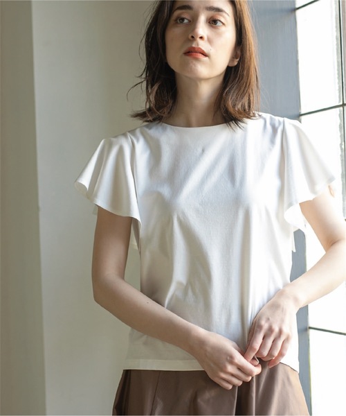 【My style is...掲載】------------------------------------------------- ▼ お気に入り登録 1800人突破!-------------------------------------------------夏に向けて嬉しい機能性ジャージを使用した、フリルスリーブカットソー【デザイン】・コンパクトめにすっきり着こなせるボディで、上品に着こなせるバランスに。・広がり過ぎないフリル袖をポイントに、肩もカバーしてくれる袖丈で設定しています。・衿ぐりを見返し仕様にする事で、表にステッチを見せずに、綺麗な仕上がりで通勤にも最適です。・インでもアウトでもバランス良き決まり、通勤やデイリーにも幅広くスタイリングが可能です。※後ろボタン開き【素材】・コットン(綿)100%の素材を使用し、シルケット加工を施すことで、滑らかな肌触りと、やや光沢感のあるきれいな表面感が魅力。・スムース素材で、しっかり1枚で着られる素材感。・お洗濯後もシワになりにくく、イージーケアな素材を使用。・接触冷感とUVケア機能も嬉しいポイント。※この製品は、太陽光線中の紫外線(UV)を通しにくくします。この効果は永久的ではありません。【スタッフコメント】sachiko(174 /骨格ナチュラル/ブルべ)Mサイズで程よくフィットするコンパクトなサイズ感です。ワンサイズあげて程よいゆとりのあるサイズ感で着用するのも良いと思います。袖のフリル感がさりげなく二の腕をカバーしてくれます◎こちらの商品は主に夏に着用いただける商品です。モデル情報:身長168cm B76 W58 H86 着用サイズ:38(M)店舗へのお問い合わせ商品番号:637-16251●製品寸法:36(S):着丈57cm B93cm 袖丈17cm 肩幅33cm38(M):着丈58cm B96cm 袖丈17cm 肩幅34cm40(L):着丈60cm B99cm 袖丈18cm 肩幅35cm42(LL):着丈60cm B102cm 袖丈18cm 肩幅36cm備考: