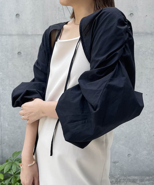 SELECT HAPPY BAG 2023SS5/18(木)~5/24(水)期間限定開催!対象アイテム3点で16,500(税込)!シンプルなスタイリングにプラスしたい1点商品ポイント・夏に向けて軽く羽織れるシャツ地のボレロ・短丈でバランスよく合わせられる・肩の後ろのラインにギャザーがたっぷり入っており、立体感のあるシルエットに・袖口がゴムになっており袖が捲りやすい・腰位置を高く見せてくれスタイルアップが叶う・綿100%のドライタッチな質感スタイリングポイント・バックストラップキャミワンピース、ボックスタックカットワンピースに合わせてトレンドライクに・キャミにハイウエストストレートデニムを合わせその上に羽織ってカジュアルに・ロゴTなどを合わせるのもおすすめ**********************透け感:なし裏地:なし伸縮性:なし光沢感:なし**********************▼洗濯方法手洗い可能※撮影場所やお使いのモニター環境により若干お色味が異なる場合がございます。特にロケの撮影では明るく見える傾向にございます。※商品はサンプルで撮影をしております。若干の仕様が変更になる場合がございますので予めご了承の上ご注文くださいますようお願いいたします。▼商品のお気に入り登録完売カラーの再入荷通知や、ラスト1点の通知、セールの通知も受け取ることができます。▼ブランドのお気に入り登録新商品や再入荷など、いち早くブランドのお得な情報を受け取ることができます。#live230518