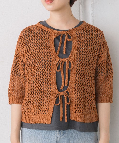 <重ね着スタイルに最適な春夏のニットの定番テープヤーンニット> ▼デザイン 平たいテープのような形状のニットを編んだテープヤーンニット 肌への接着面が少なく春夏ニットにはよく活用されます! こちらを採用したローゲージニットは今年らしい重ね着スタイルに最適! 前後2WAYで着られバックシャンアイテムとしても、カーディガンのようにも着られます。 ▼コーディネート タンクトップやTシャツ、ワンピースなどの上から重ねたコーディネートがおすすめ! インナーとのカラーコーディネートも楽しめます! ------------------------------ 生地感:普通 伸縮性:ある 透け感:ある 裏地:なし ------------------------------ ▼ブランド紹介 RETRO GIRL (レトロガール) 自分らしい“ベーシックアイテム”と 新しい自分の”トレンドアイテム”が 見つかる場所 今らしいファッションを楽しむ 女性のためのブランド #カラーコーデ #カラーアイテム #メッシュトップス #メッシュプルオーバー #テープヤーン #2way ▼注意事項 ※撮影環境やモニター環境によって実際の商品とお色味が多少異なってみえる場合がございます。 品番:RS380012T004 / 品名:2WAYテープヤーンニット