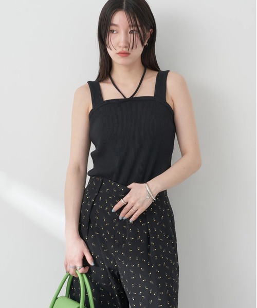 伸縮性のあるリブ素材で着心地の良さを演出するタンクトップ。ホルターは取り外すことができ、シンプルな着こなしも楽しめます。合わせやすいモノトーンや、スタイリングのアクセントになるカラー展開にも注目◎あらゆる季節で活躍してくれるアイテムです。透け感[無し] 裏地[無し] 伸縮性[有り] 光沢感[無し] 生地の厚さ[普通] 付属品[無し] ポケット[無し]●製品寸法:S:バスト35 着丈58 裾幅35M:バスト38 着丈60 裾幅38備考: