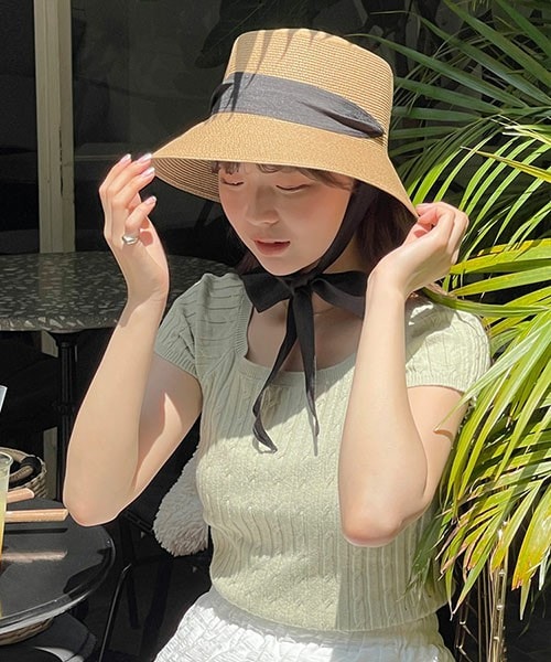 ブラックカラーのストラップ付きのペーパーブレンドハット! ストラップを穴に通すことで首元でリボンを結ぶことができます! ワイドブリムなので小顔効果、日よけ効果もあり、夏に大活躍するハットです! ※ドライクリーニングをお奨めいたします。 ※明るい色味は透け感が気になる場合がございます。 ※パターンにずれが生じる 場合がありますが不備ではございません。