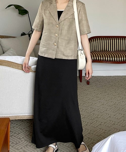 カジュアルな素材のマキシ丈のスカートはクロップ丈のトップスやトップスをインして着るのがおすすめです(*^^*)! 秋口は大き目のアウターと合わせて着てもかわいいおすすめのスカートです!