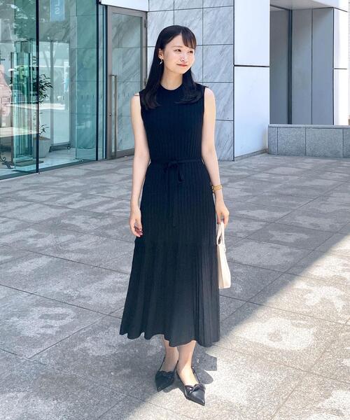 接触冷感性のある涼やかニットワンピース【素材】・優しい肌触りのレーヨン・ナイロンニットを使用。・もっちりとした素肌に触れても安心な素材感。柔らかな光沢があり、上品な印象。・ボディは総針編みで透け感を抑え、スカート裾部分を天竺ガーター編みで切り替えることで、透け感を抑えつつ、軽やかにふわりと広がります。・アンチピリング・UVケア・接触冷感機能付き。・マシンウォッシャブルニットなので、美しい表面感をお手入れらくちんに長く楽しめます。※裏地なし※ライトグレー(811)はやや透け感があるため、インナーの着用をおすすめします。※この製品は、太陽光線中の紫外線(UV)を通しにくくします。この効果は永久的ではありません。【デザイン】・段違いで柄編み地を切り替えた一枚で着映えるデザイン。・自然に広がる少し長めの丈感で、華やかな印象。・少し詰まったネック回りで、ノースリーブですが、上品きれい目にこなせます。・すそに向かって広がるデザインなので、体型を拾いすぎず、どなたにも着合わせやすいデザインです。・共地のウエストベルトでマークすれば、スタイルアップ効果も期待できます。※ポケットなしこちらの商品は主に夏に着用いただける商品です。モデル情報:身長166cm B80 W58 H83 着用サイズ:38(M)店舗へのお問い合わせ商品番号:C58-56007●製品寸法:36(S):着丈105cm B62cm 肩幅30cm W66cm H82cm 付属ヒモ全長170cm 付属ヒモ幅1.5cm38(M):着丈107cm B66cm 肩幅31cm W70cm H85cm 付属ヒモ全長170cm 付属ヒモ幅1.5cm40(L):着丈110cm B71cm 肩幅33cm W74cm H88cm 付属ヒモ全長170cm 付属ヒモ幅1.5cm42(LL):着丈113cm B76cm 肩幅35cm W80cm H92cm 付属ヒモ全長170cm 付属ヒモ幅1.5cm備考: