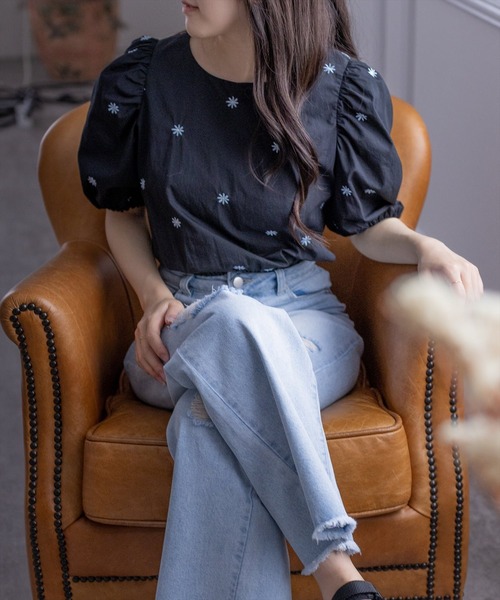 小花の刺繍がアクセント!刺繍入りショート丈ブラウス 【デザイン】 着用感がふんわりとしたシルエットがきれいなブラウス。 ウエストの両サイドにスリットがはいっていて、夏らしくトレンド感を引き出してくれます♪ また、ショート丈になっているので、スタイルアップして着ていただけます! 【素材感】 肌触りの良い綿素材 伸縮性:なし / 透け感:オフホワイトのみ若干あり / 裏地:なし 手洗いによる洗濯可 / ドライ・ウェットクリーニング可 【コーディネート】 ハイウエストなボトムスとの合わせがおすすめです! フレアスカートで女性らしく、またデニムにヒールのあるサンダルを持ってきていただくのも◎ 【※お取り扱い上のご注意】 1:モニター環境等により実際の商品と多少色味が異なって表示される場合がございます。予めご了承下さい。 2:屋外で撮影された商品は、天候により多少実際のカラーと異なる場合があります。商品のカラーはトルソー(マネキン)の商品画像をご参照ください。 3:濃い色の商品は、お洗濯や摩擦等による移染にご注意ください。 4:末永くご愛用頂く為に、アテンションタグ・洗濯ネームを必ずご確認の上、着用又はお取り扱い下さい。 5:生産時期により、色、サイズ、デザイン、素材の質感が多少が異なる場合がございます。あらかじめ御了承下さいませ。