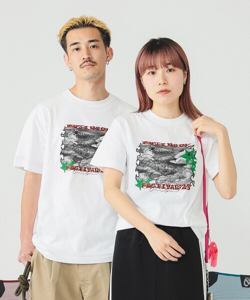 「FUJI ROCK FESTIVAL'23 × BEAMS」夏の音楽フェスには欠かせないTシャツ。今年も『FUJI ROCK FESTIVAL'23』のオフィシャルTシャツを、計5組のアーティストとタッグを組みBEAMSが制作、販売。今回タッグを組んだのは、ERIC ELMS 、HOME ECONOMICS EXPERIMENT、WACKWACK、RYOTA DAIMON、The Wonderful!Design works.。BEAMSに所縁のあるアーティストや若手アーティストによる個性豊かなTシャツは、会場に華を添えること間違いなし。「超気持ちいい!FUJI ROCK」のテーマを掲げ、FUJI ROCKでしか味わえない音楽体験『FUJI ROCK FESTIVAL'23』を、ぜひBEAMS限定Tシャツと共にお楽しみください。今回のデザインに関しては、アーティストからコメントを頂いております。好きなアーティストが沢山パフォーマンスをするFUJI ROCKに関わることが出来て嬉しいです。開催地の広大な自然と音楽の融合をイメージして制作しました。RYOTA DAIMON1997年東京都生まれ。幼少期から絵を描き続け現在に至る。音楽、スケートボードなどのストリートカルチャーを始め、更にはファインアートまで活動を広げている。最近では東京だけでなく大阪、更には、台北、韓国など国外でも個展を開催している。アパレルではAWAKE ny やThis is never that など、音楽では加藤ミリヤ シングル"LIE LIE LIE"のカバーアートなどに作品提供を行っていて国内外から注目を集めている。@ryotadaimonBEAMS STAFF:H162 Size:S※画像の商品はMサイズのためレディース展開のSサイズとはサイズ感が異なります。※商品の色味は白背景商品単体で撮影した画像をご参照ください。※屋外撮影による光の当たり具合やパソコンなどの閲覧環境によって、実際の色味と異なって見える場合がございます。予めご了承ください。FUJI ROCK FESTIVAL / フジロックフェスティバル新潟県湯沢町苗場スキー場にて開催されるロック・フェスティバル。