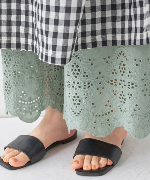 いつもの装いに合わせるだけ。裾のスカラップレースが可愛いぺチパンツ。足元からレースを覗かせれば、ぱっとコーデが華やかに。【ポイント】・いつものコーデに合わせるだけ。ぱっと華やかさをプラスするぺチパンツ。夏のワンピースコーデやレイヤードスタイルにピッタリな、透け感が涼しげな素材感です。・花刺しゅうのスカラップレースがナチュラル感を演出。・ウエストは総ゴム仕様でゆったり楽ちん。着ぶくれ感がでないように考えました。・ウエスト調節紐付きでしっかり留まって安心感◎【素材】夏にぴったり、涼し気な生地感のお肌にやさしい布帛素材。さらっと軽やかで、快適な穿き心地です。※透け感がある為、1枚でのご着用は出来ません。インナーとして着用し、お楽しみください。○MODEL:miona 身長161cm Mサイズ着用● ウエスト総ゴム使い<外側スピンドル入り>※ 商品によって柄の出方が異なる場合があります。洗濯:洗濯機時ネット使用 ---------------------------------------------------------------------【お買物をよりお楽しみいただく為に】▼商品のお気に入り登録をおすすめします♪『♥をクリック!』完売カラーの再入荷やラスト1点の追加、セールの際の通知を受ける事ができます。ブランドのお気に入り登録もご一緒にお願い致します。---------------------------------------------------------------------"