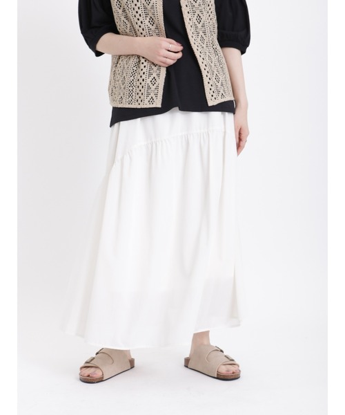 ラウンド切り替えのティアードデザインで、華やかな印象に仕上げたスカート。 ふんわりと揺れるフレアなシルエットが女性らしい印象を演出してくれます。ウエスト部分はゴム仕様になっており、安心感のある穿き心地◎ シンプルな無地で着回し力も高く、ワードローブの定番アイテムとしても重宝すること間違いなしです。 ※商品画像は、撮影環境やお客様のご利用のPC・スマートフォンのモニター環境などにより実物と色味に差異がある場合がございます。 【その他採寸】 F ウエスト:[後ゴム仕様]62cm ★《お気に入り登録》でお得な情報をGET★ ① 商品ページ内のハートマークをクリック! ② 以下通知が受け取れます! 「再入荷」「ラスト1点」「特別セール」etc.. \ブランド、ショップのお気に入りも是非!/