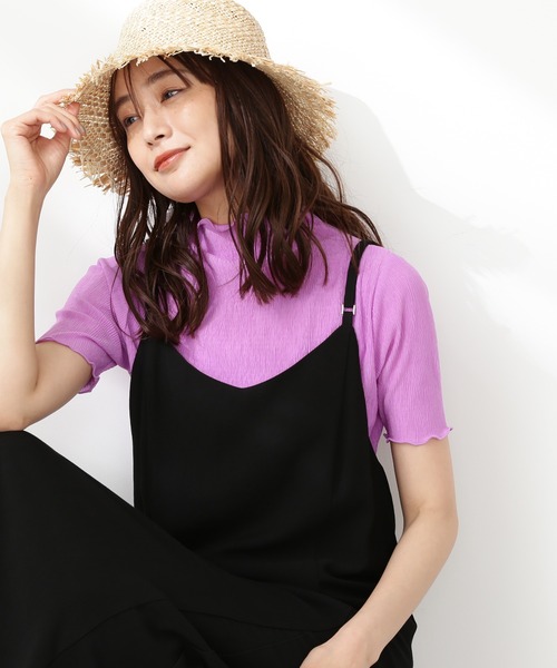 シュリンク加工で凹凸感をだしたカットソーは、やや立ち上がりのある襟と袖口はくるんと波打つメロー加工が可愛らしいポイント。着用時のシルエットもシンプルなので、キャミワンピースとのレイヤードスタイルから、スカートやパンツまで相性が良く、カジュアルにもフェミニンにも着回しがきくアイテムです。**********************透け感:ややあり裏地:なし伸縮性:ややあり光沢感:ややあり生地の厚さ:薄手**********************