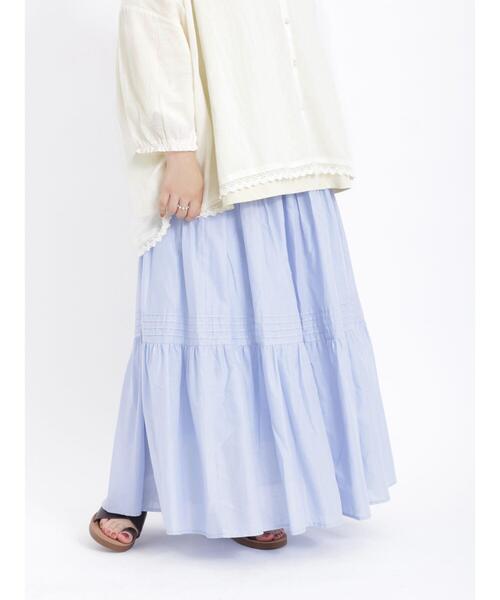 何にでも合わせ易いギャザーたっぷりの3段ティアードスカートです。 下の切り替え部分にはピンタックを入れてポイントにしています。 ウエストがギャザーですのでリラックスして着られます。【1711986-24-11 ギャザーブラウス】と合わせて、セットアップで着るのもおすすめです◎※商品画像は、撮影環境やお客様のご利用のPC・スマートフォンのモニター環境などにより実物と色味に差異がある場合がございます。【その他採寸】F ウエスト:[ゴム仕様]66cm