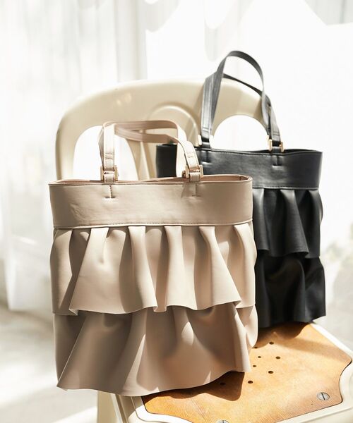 大きめなフリルがポイントのトートバッグが登場!■デザインフェミニンなフリルがついているのがポイント!コーディネートに合わせやすいカラーで使いやすく、通勤通学のサブバッグにもおすすめです。■サイズ感500mlのペットボトルが収納可能です。■スタイリング柄物ワンピースや華やかなブラウスとデニムのスタイリングに合わせるのがおすすめです◎■商品のお気に入り登録 再入荷通知やのこりわずか、お得なプライスダウンの情報も受け取ることができます。ぜひご登録ください◎