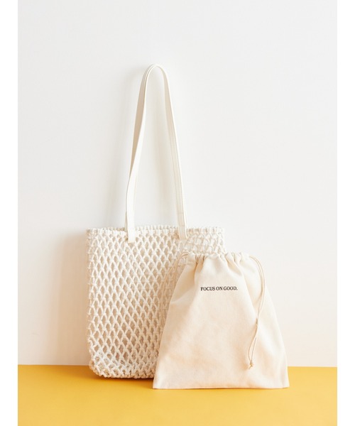 ■デザイン ・ナチュラルな雰囲気を演出してくれるマクラメ編みのトートバッグ。 ・使いやすいコンパクトなサイズ感。 ・中に入っている巾着バッグは、別々でも使用可能です◎ ・巾着にはロゴが入っており、網目からさりげなく見えるところもポイント。 ・ショルダー部分は細平ベルトにして、スタイリッシュに仕上げました。 ■素材 ・本体の編み紐は綿素材 ・巾着タイプのインナーバッグは綿の帆布を使用 ・ハンドル部分は合皮を使用 ■カラー ・コーディネートに取り入れやすいアイボリー、ブラックと鮮やかなブルーの3色展開。 別品番の色違い【ブラック】をご用意しております。 ※一部素材が異なります。 HA36L2J03F0 マクラメトートバッグ B ●製品寸法: F:たて31cm よこ27cm マチ5cm 持ち手96cm 備考: