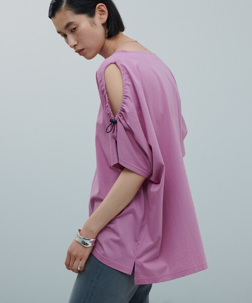 DESIGN POINT 今年らしいドロストTシャツ。 肩部分にドロストコードを入れて、ほどよい開き具合で肩見せさせたリゾートにも最適なTシャツです。 STYLING POINT キレイめなパンツを合せて通勤に、デニムなどカジュアルボトムを合わせてオフタイムに。 またマキシスカートと合せれば一気にリゾート感のあるスタイリングが完成します。 FABRIC POINT ほどよい肉ややあり 【生地詳細】 透け感:ややあり 伸縮性:ややあり 生地の厚み:普通 裏地:なし 洗濯方法:洗濯機洗い可 こちらの商品は主に夏に着用いただける商品です。 モデル情報:身長168cm B77 W57 H85 着用サイズ:38 店舗へのお問い合わせ商品番号:523-16033 ●製品寸法: 13(LL):着丈(前)70cm 着丈(後)73cm B174cm 裄丈43cm 38(M):着丈(前)68cm 着丈(後)71cm B168cm 裄丈42cm 備考: