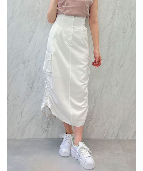 サイドギャザーを裾に大降りに聞かせてアクセントに。 ポケットデザインをプラスしワークスタイルに欠かせないアイテムです。 Iラインのすっきりしたシルエットで女性らしさを出し色香を残したポイントも魅力。 【スタイリング】 チュール素材などの甘さあるデザインテイストのアイテム合わせがおすすめ。 エアリー感を残しながらもスタイリッシュなコーデが完成します。 Tシャツとでミニマルな組み合わせもおすすめです。 【 お買いものにおすすめの便利機能! 】 ★商品のお気に入り登録 完売カラーの再入荷時や、ラスト1点の時、セール開始時にお知らせします。 ★ブランドのお気に入り登録 新商品や再入荷、セール情報など、いち早くブランドのお得な情報を受け取ることができます。 ぜひご活用ください。