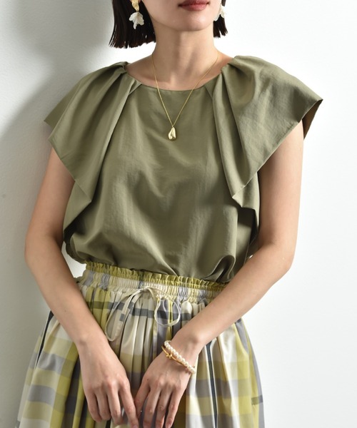 大き目なラッフルが魅力夏のフェミニンブラウス女性らしい優しいシルエットとラッフルが目を惹くプルオーバー。絶妙なバランスのラッフルとバックネックがポイントです。また丸みのあるショルダーラインは女性らしいスタイリングに決まり、気になる腕回りを華奢に演出してくれるのもポイント◎これからのシーズンに活躍する肌さわりの良いタンブラー素材を使用。ドライなタッチで爽やかな着心地が◎着るだけでこなれたスタイリングを叶えてくれる1枚は、トップスを主役にしたコーディネートがお勧めです。いつものボトムスを合わせるだけでワンランクアップしたスタイリングが演出できます。■取扱いご自宅でイージーケア(手洗い)ができます。INTERPLANET/actuel(インタープラネット/アクチュエル)・conceptいつだって私らしく、私自身のスタイルが決まる。。。時代や年齢に媚びない『らしさ』を纏って生きる女性へ。旬なベーシックと抜け感のあるカジュアルをMIX。そんな大人カジュアルコーデを提案します。・お気に入りの登録についてショップ、ブランドのお気に入り登録でクーポンやタイムセールの通知などお得な情報を受け取ることができます♪また、気になるアイテムのお気に入り登録でセールや再入荷の通知など受け取ることができます。