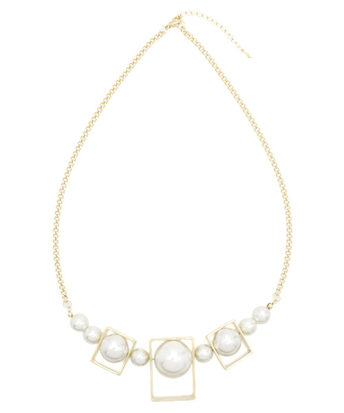 mystic(ミスティック) ボックスのモチーフの中にパールを組み合わせたネックレス。存在感も抜群なので、シンプルなコーディネイトにお勧めです!