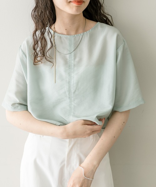シンプルデザインとシアー素材がかわいい!夏に着たいマストブラウスが登場!商品ポイント・シアー感がポイントになるコンパクトなブラウス。・シンプルな型なので様々なスタイリングで着ていただけます。・やや光沢感のある生地が上品な印象に見せてくれます。スタイリングポイント・インナーにキャミソールやタンクトップを合わせることで抜け感のあるスタイリングが叶います。・コンパクトな丈感なのでハイウエストのボトムと合わせればスタイルアップ!・デニムとの合わせは相性抜群!"※洗濯、取り扱い洗濯:40度限度 手洗いアイロン:低温110℃まで スチームなし(あて布使用)タンブル乾燥:不可-----------------------------------------------------裏地:なし伸縮性:なし光沢感:ややあり生地の厚さ:うすめ------------------------------------------------------------------------------------------------------------商品のお気に入り登録➡ お気に入りアイテムの値下げ・再入荷・在庫1点などの通知を受け取ることができます。ブランドのお気に入り登録➡ 新商品や再入荷、セール、クーポン配布などお得な情報を受け取ることができます。※サイト上のカラー名と、お届け商品に記載されているカラー名が異なる場合がございます。※商品の色味は、撮影場所や光のあたり具合などにより色味が違って見える場合が御座います 。また、お客様のお使いのPCのモニター環境などにより色味が違って見える場合が御座います。予めご了承の上ご注文下さい。※ご注文いただいた予約商品のお届け時期の確認は、注文履歴ページより行えます。------------------------------------------------------"