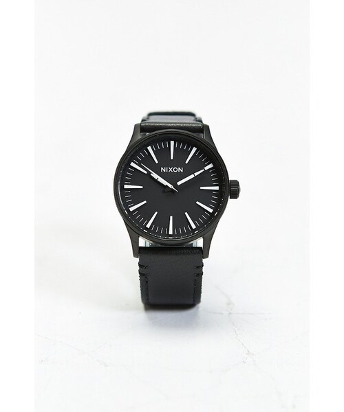 Less is more with the Sentry 38 analog watch from the timetelling experts at Nixon. 100 meter/10 ATM custom solid stainless steel case with a fixed stainless steel bezel. Custom molded Miyota Japanese quartz 3hand movement and dial with applied contrast minute and hour indices. Domed in hardened mineral crystal with a double gasket stainless steel crown. Stainless steel screw down caseback and spring pin lugs. Finished with a smooth black leather band and stainless steel buckle. Content + Care Stainless steel, leather Spot clean Imported Measurements Band: 21mm Case: 38mm Shipping Only available for shipment within the United States