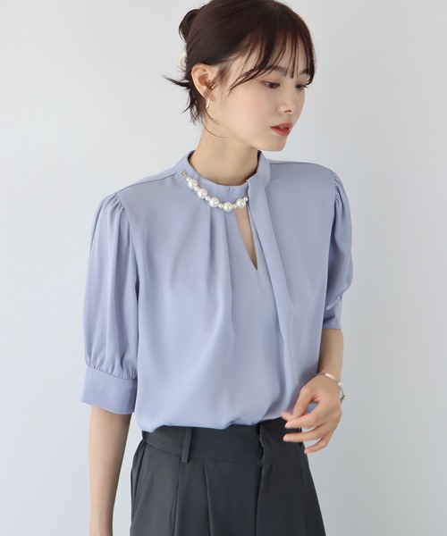 【2023SS】 パールアクセが華やかな半袖ブラウス 人気アイテム【69067972】の半袖バージョンが登場! ◦POINT ハイネックのクラシカルなデザインブラウス。 さりげなく入った襟元のVカットが抜け感を作り出し、 アクセサリー要らずでそのまま着るだけで華やかで女性らしい着こなしが楽しめます。 5分袖で長めの丈感なので二の腕をカバーできるのも嬉しいポイント! ◦STYLING マーメイドスカートやレーススカート、タイトスカートなどと合わせてフ通勤用のオフィスカジュアルに。 デニムやスラックスと合わせるのもおすすめです。 合わせるアイテム次第で、通勤・オフィスルックや 入学式(入園式)・卒業式(卒園式)・お受験・七五三などのセレモニー・オケージョン・フォーマル・パーティーなどのシーン、 きれいめカジュアルにデイリーまで様々なシーンに活躍する一着です。 ◦DETAIL パールアクセサリー付き ハイネック&Vカット 5分丈のボリューム袖 M/Lサイズ展開 ◦FABRIC 滑らかな光沢のあるサテン素材 [ コーディネート ] フラワーレースタイトスカート 65110316(ZOZO)542214-3733(店舗) ハイウエストマーメイドスカート 70781088(ZOZO)512314-5601(店舗) ハイウエストツータックスラックス 75159994(ZOZO)542316-5803(店舗) ポインテッドTストラップサンダル 74539712(ZOZO)542319-5788(店舗) バックストラップパンプス 74164119(ZOZO)542319-5782(店舗) スクエアトゥ やわらかフェイクレザービット付きローファー 53963410(ZOZO)542029-9745(店舗) [ 商品のお気に入り登録 ] 完売カラーの再入荷通知や、値下げのお知らせ、ラスト1点の通知などが受け取ることができます。 随時再入荷していますので、お気に入り登録して頂くと再入荷情報がGET出来ます。 [ ブランドのお気に入り登録 ] 新商品の発売や再入荷、タイムセールやクーポン発行のお知らせなど BLUEEASTのお得な情報を受け取ることができます。ぜひご登録ください♪ ※撮影環境により、モデル着用画像は実際の商品と色味が異なって見える場合がございます。 また、PCやスマートフォンの環境により画面上と実物では多少色が異なって見える場合がございます。 トルソー画像が実際の商品に一番近いお色となりますのでご確認ください。