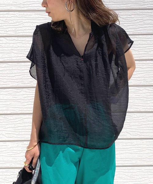 透け感のあるレーヨン素材が涼し気なブラウスです。スキッパータイプなので抜け感を出した着こなしにも◎程よい光沢感は、キレイめスタイルからカジュアルスタイルと幅広いシーンで活躍してくれます。適度に隠れる袖丈とゆったりしたサイズ感は、気になるところをカバーしながら暑い日も涼しく着れる優秀ブラウスです。《インフォメーション》◆商品のお気に入り登録完売していても再入荷時に再入荷通知を受け取ることができますので、是非ご登録ください。◆ブランドのお気に入り登録新商品や再入荷などの情報を受け取ることができますので、是非ご登録ください。